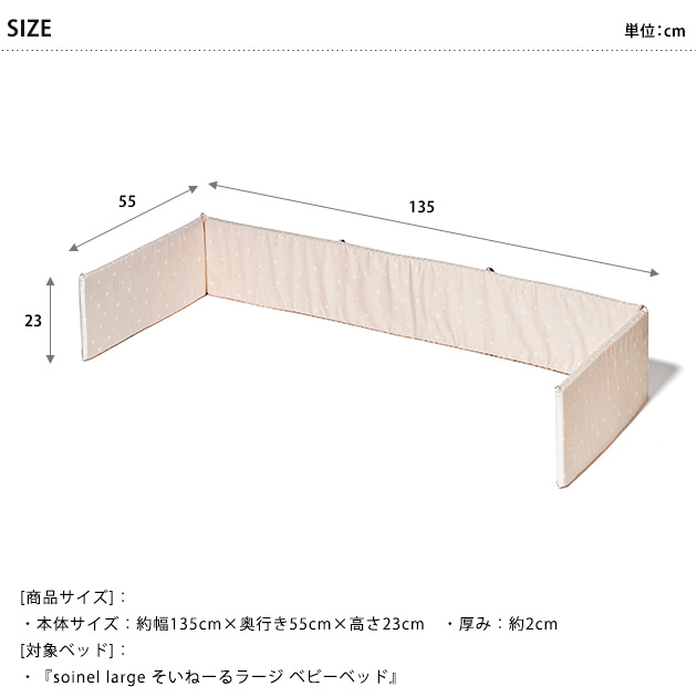 ・『soinel large そいねーるラージ ベビーベッド』専用のベッドガードです。(床板内寸135×60cm)