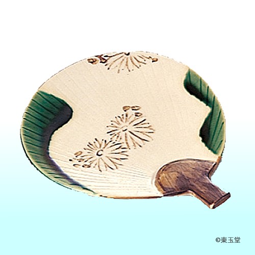 団扇菓子器 織部 五陶作