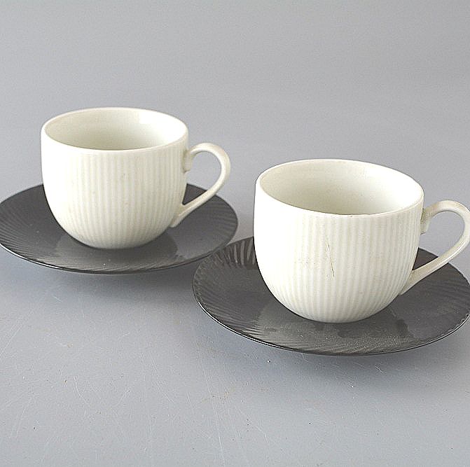 コーヒーカップ&ソーサー 2客セット 縦筋 LAブランド mg007