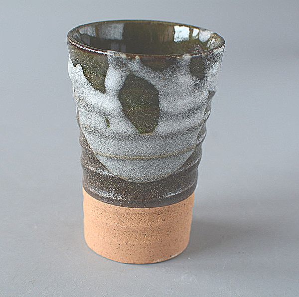 焼酎カップ 湯飲み 窯変白流れ 織部
