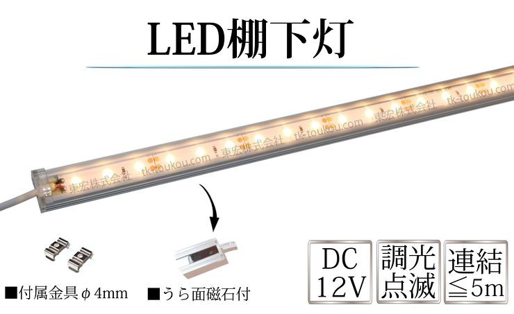 LED棚下灯 LED棚下ライト TK-12V-600-30K 電球色(3000K) 適用棚600mm マグネット バーライト ライン照明 スリムライト 両端ジャック付 外径5.5mm×内径2.1mm