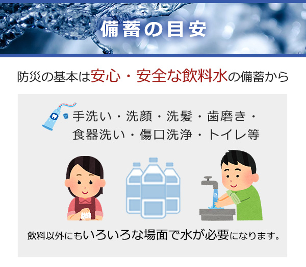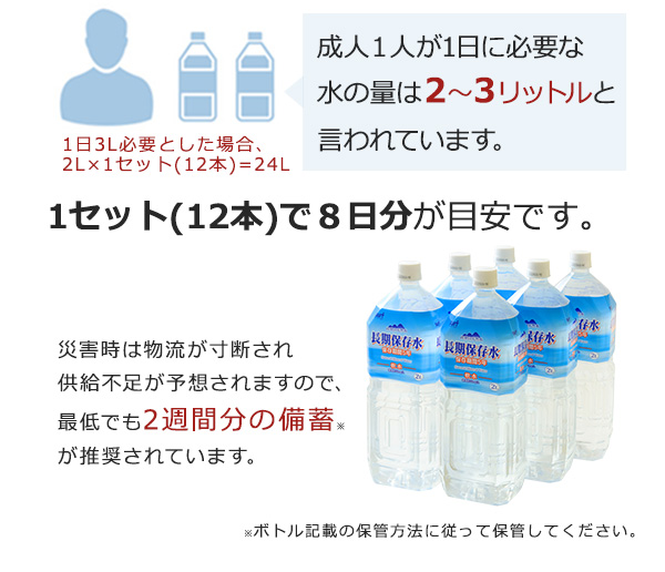 長期保存用ミネラルウォーター、軟水、避難グッズ、防災グッズ、避難用品、防災用品、保存食、2リットル、500ミリリットル、ほぞんすい、びちくすい、ちょうきほぞんすい