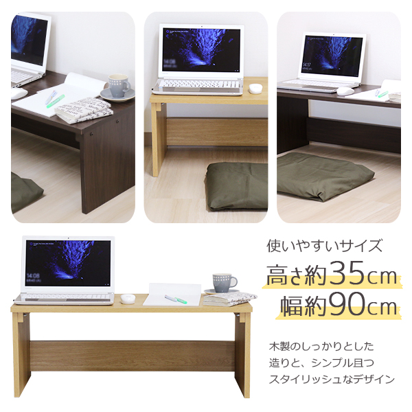 デスク ブラウン 幅90cm ロー タイプ 日本製 木製 シンプル コンパクト 在宅 テレ ワーク オフィス 勉強 机