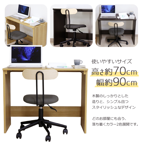 デスク ナチュラル 幅90cm ハイ タイプ 日本製 木製 シンプル コンパクト 在宅 テレ ワーク オフィス 勉強 机