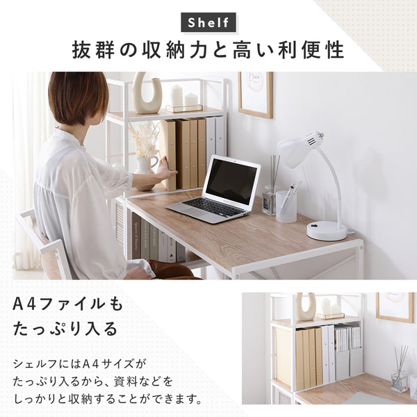 【商品名】 デスクセット 2点セット〔 デスク 幅90cm +シェルフ 幅50cm 〕 ナチュラル スチール 組立品 【ジャンル・特徴】 ワークデスク 学習机 オープンラック 収納ラック オープンシェルフ 収納家具 本棚 在宅ワーク リモートワーク 引っ越し 新生活 1人暮らし 一人暮らし ぱそこんですく がくしゅうつくえ しぇるふ らっく