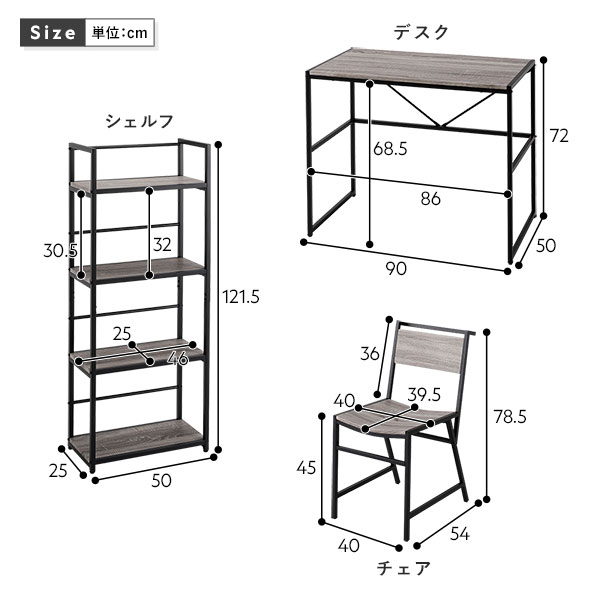 チェア:幅40×奥行54×高さ78.5cm(座面高:45cm)