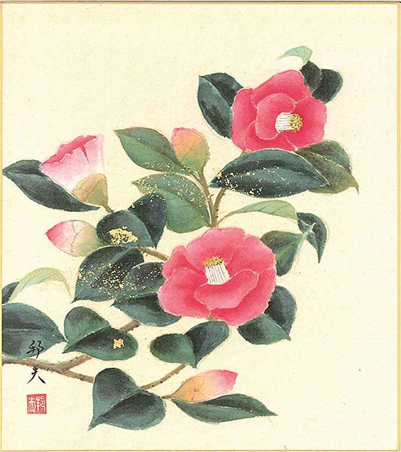 色紙(冬)片山 邦夫作画「椿」 色紙寸法24.2X27.2cm