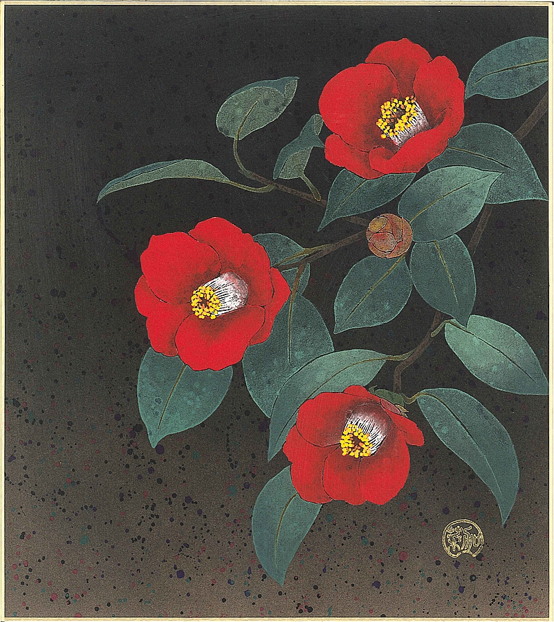 色紙(冬)白木 菜加作画「椿」 色紙寸法24.2X27.2cm