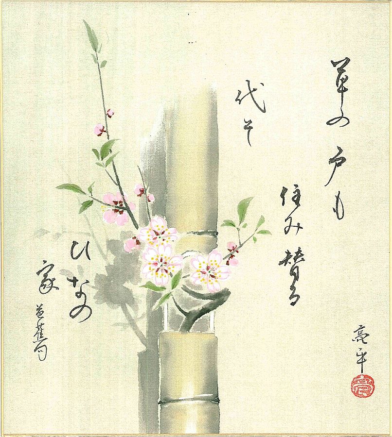 色紙(春)木村 亮平作画「ひなの家」 色紙寸法24.2X27.2cm