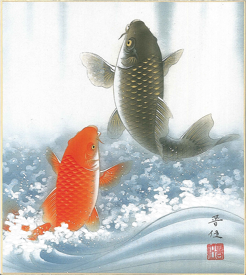 色紙(春)佐藤 晋伍作画「金運大昇鯉」 色紙寸法24.2X27.2cm