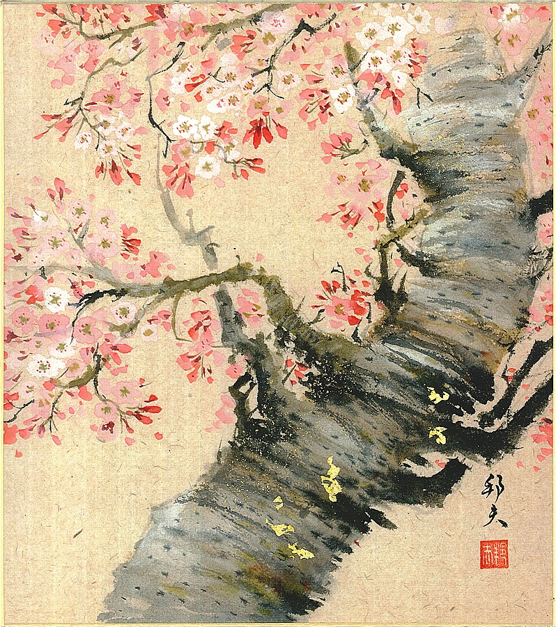 色紙(春)片山 邦夫作画「桜」 色紙寸法24.2X27.2cm