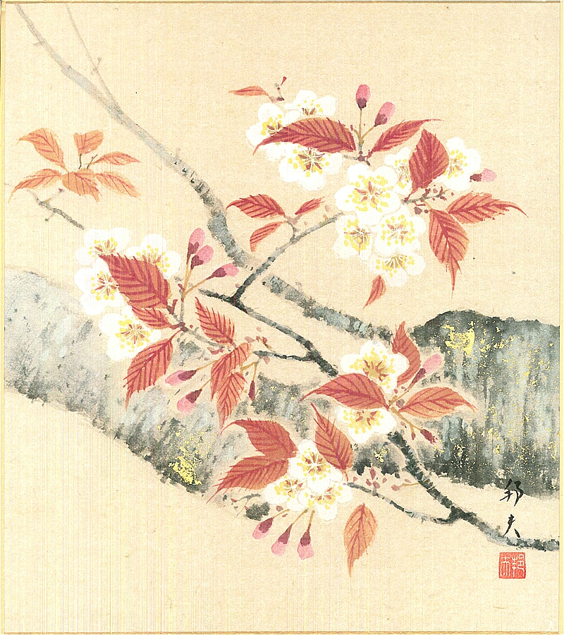 色紙(春)片山 邦夫作画「桜」 色紙寸法24.2X27.2cm