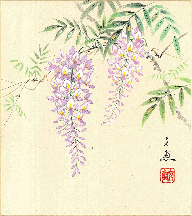 色紙(春)中谷 文魚作画「藤」 色紙寸法24.2X27.2cm