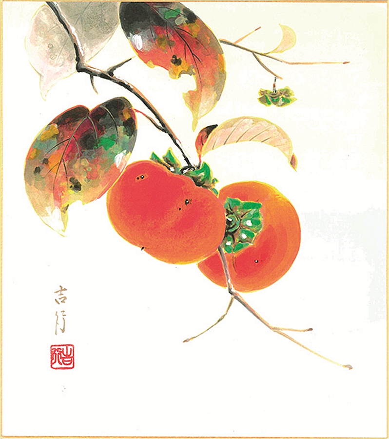 色紙(秋)佐藤 吉行作画「柿」 色紙寸法24.2X27.2cm
