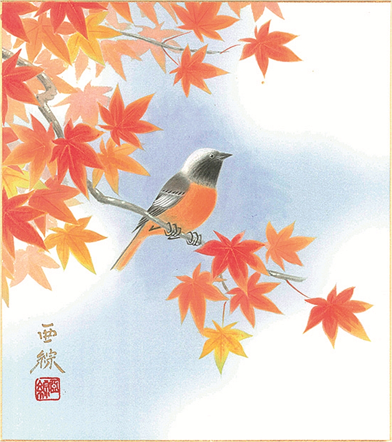 色紙(秋)林 亜綜作画「紅葉」 色紙寸法24.2X27.2cm