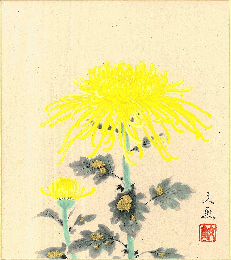 色紙(秋)中谷 文魚作画「菊」 色紙寸法24.2X27.2cm