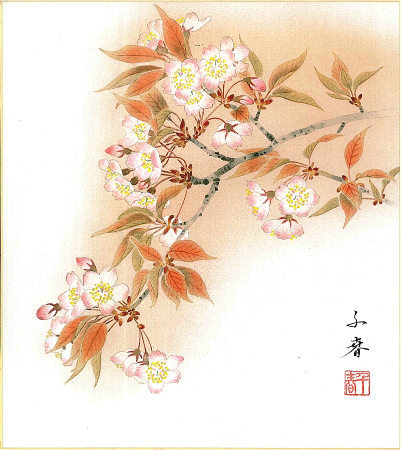 誕生花色紙(誕生花 風水四季花)中村 千春作画「桜(4月)」 色紙寸法24.2X27.2cm
