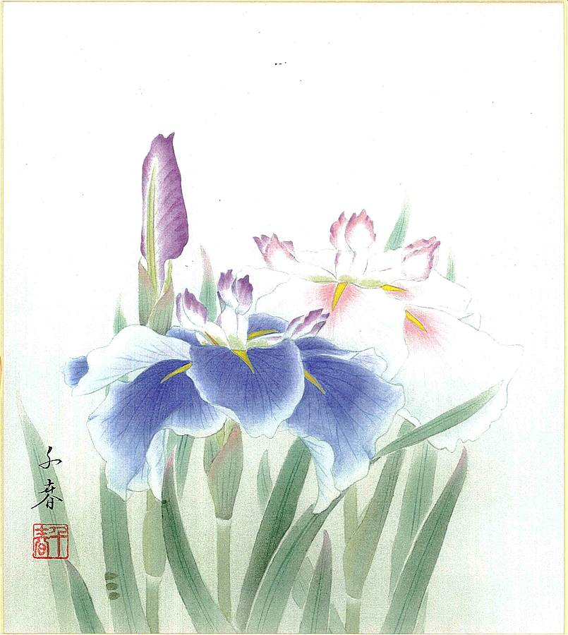 誕生花色紙(誕生花 風水四季花)中村 千春作画「菖蒲(5月)」 色紙寸法24.2X27.2cm