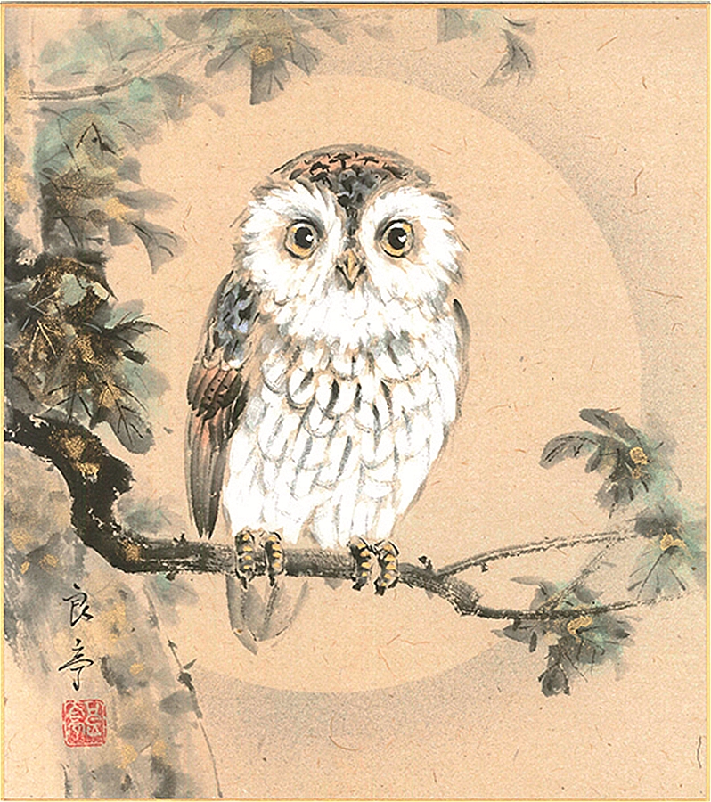 色紙(年中 その他)今瀬 良亭作画「ふくろう(不苦労)」 色紙寸法24.2X27.2cm