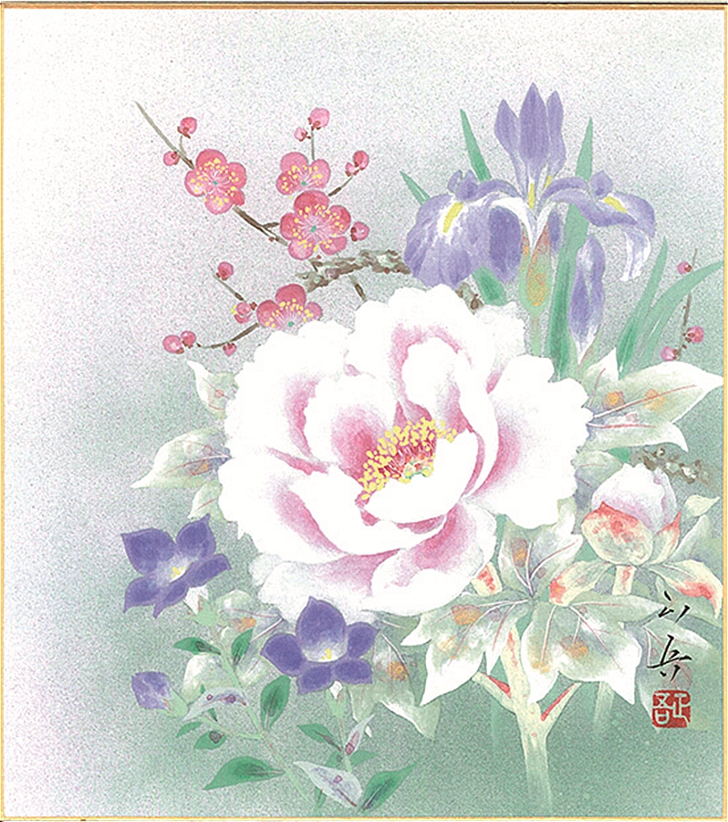 色紙(年中 その他)石井 正吾作画「四季草花」 色紙寸法24.2X27.2cm