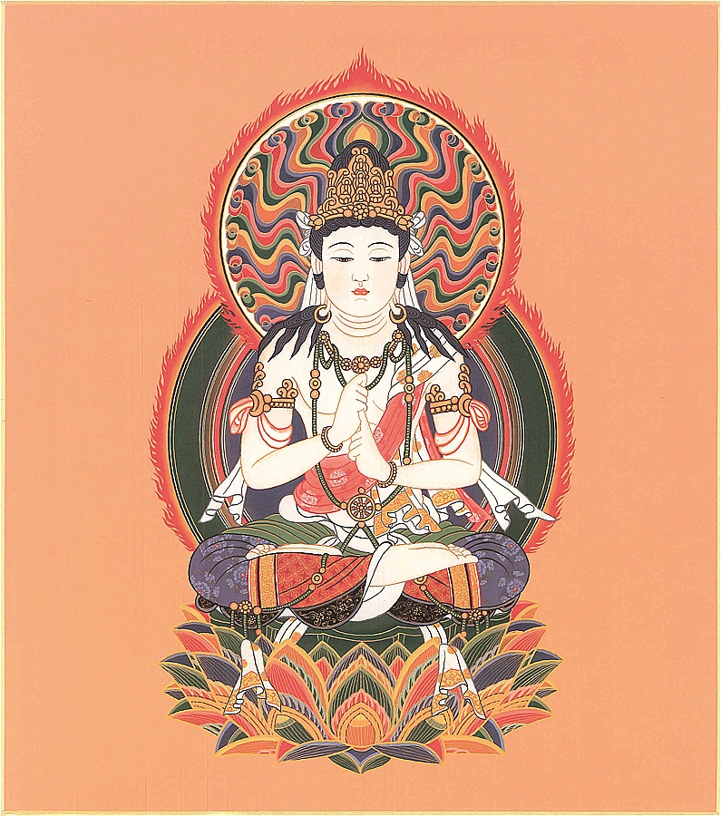 ・大日如来は宇宙一切の森羅万象を表し、その智慧の大光明は昼夜の別なく万物を照らし、慈悲の活動は不生不滅である為に人々に幸せと繁栄をもたらします。