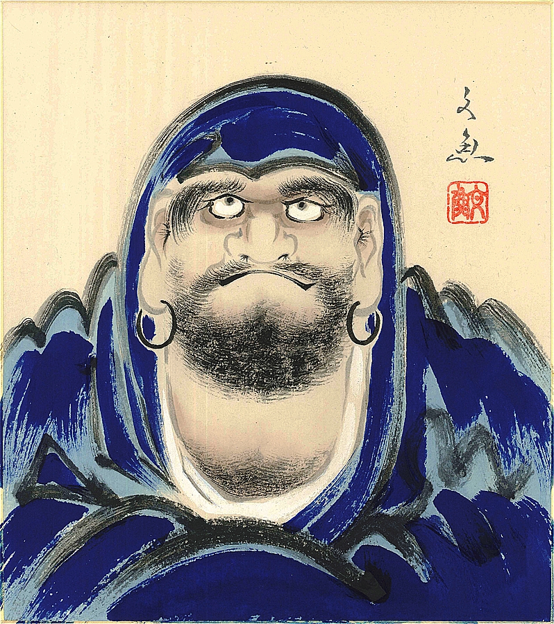 色紙(年中 その他)中谷 文魚作画「青達磨」 色紙寸法24.2X27.2cm