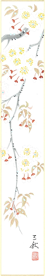 短冊(春)北条 静香作画「桜」 短冊寸法36.3X6cm