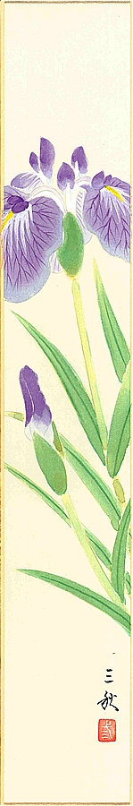 短冊(春)北条 静香作画「菖蒲」 短冊寸法36.3X6cm