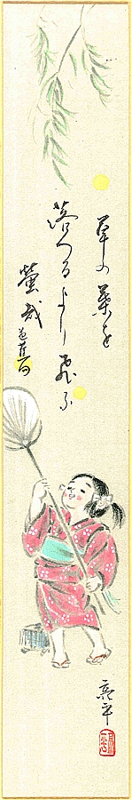 短冊(夏)木村 亮平作画「飛ぶ蛍」 短冊寸法36.3X6cm