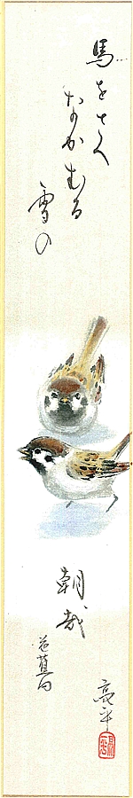 短冊(冬)木村 亮平作画「雪の朝」 短冊寸法36.3X6cm