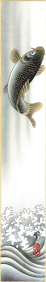 短冊(端午の節句)中川 翆作画「飛鯉」 短冊寸法36.3X6cm