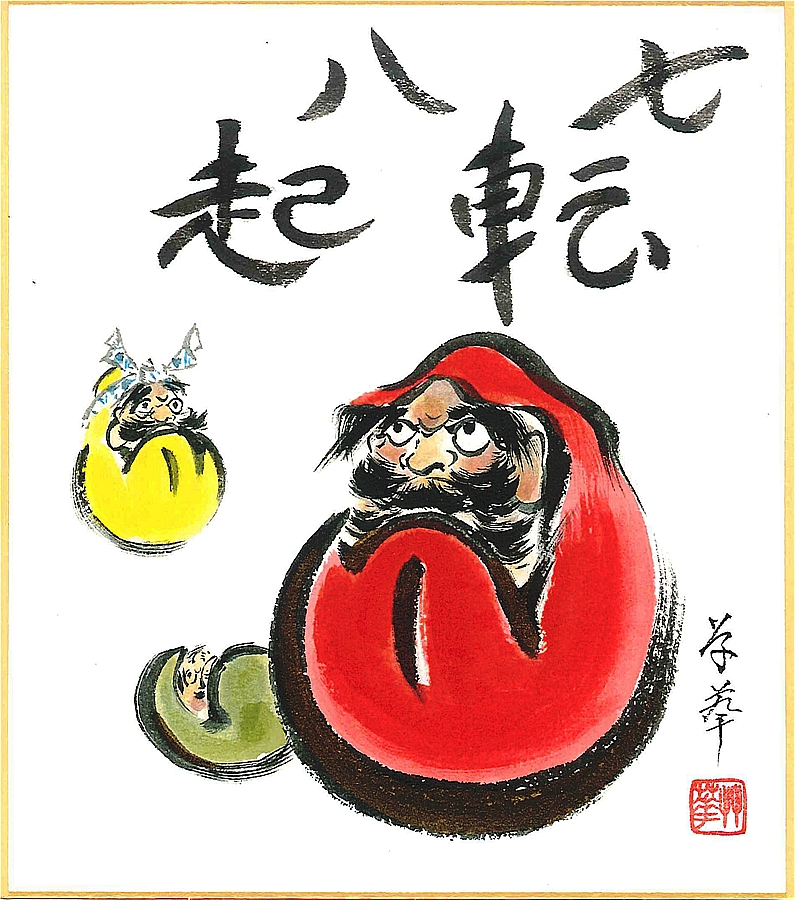寸松庵色紙(年中)東出 草華作画「七転八起」 寸松庵寸法13.6X12.1cm