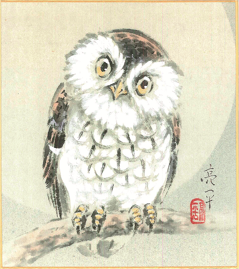 寸松庵色紙(年中)木村 亮平作画「ふくろう」 寸松庵寸法13.6X12.1cm
