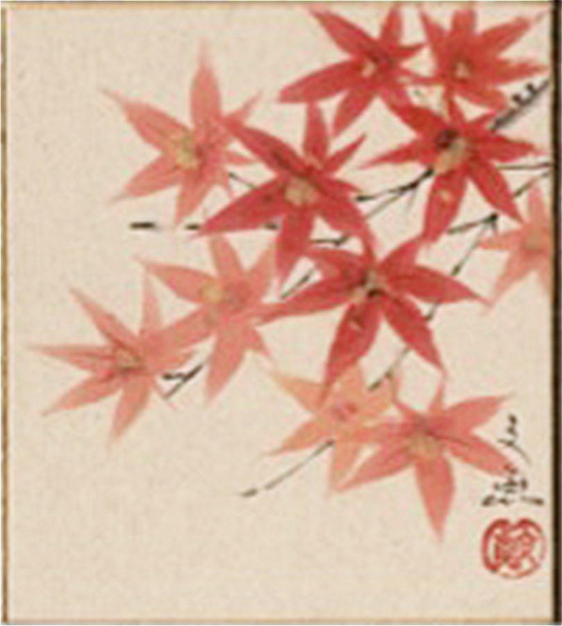 寸松庵色紙(秋)中谷 文魚作画「紅葉」 寸松庵寸法13.6X12.1cm