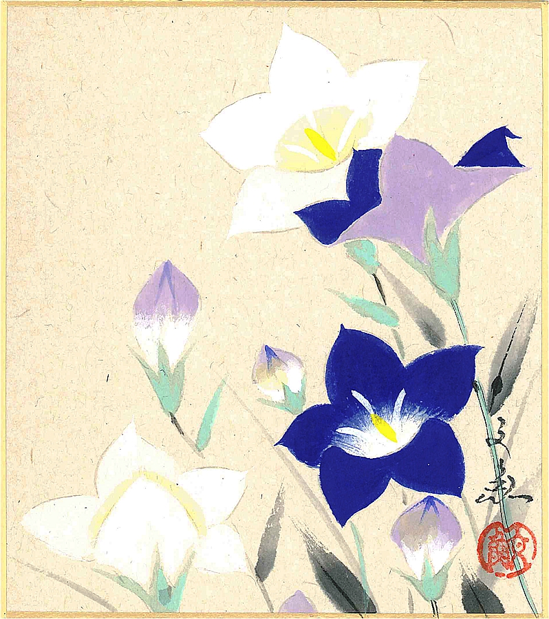 寸松庵色紙(秋)中谷 文魚作画「桔梗」 寸松庵寸法13.6X12.1cm