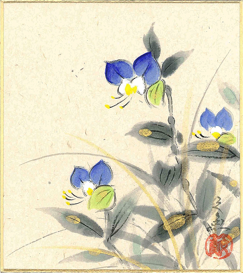 寸松庵色紙(春)中谷 文魚作画「つゆ草」 寸松庵寸法13.6X12.1cm