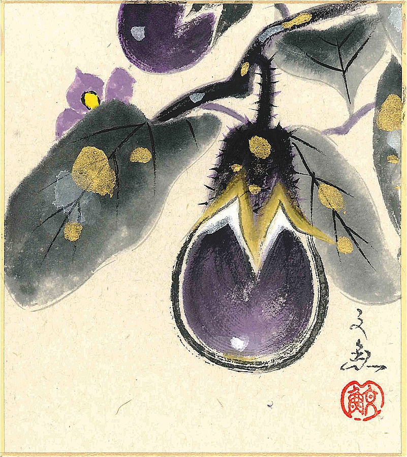 寸松庵色紙(夏)中谷 文魚作画「茄子」 寸松庵寸法13.6X12.1cm