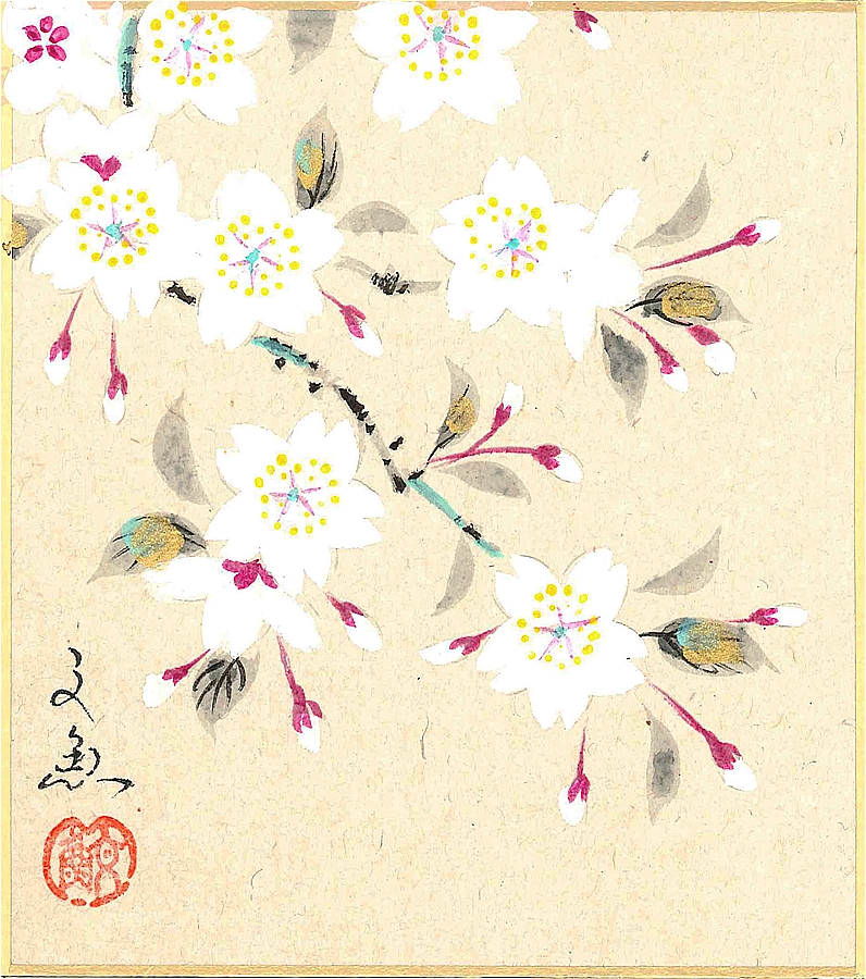 寸松庵色紙(春)中谷 文魚作画「桜(左)」 寸松庵寸法13.6X12.1cm