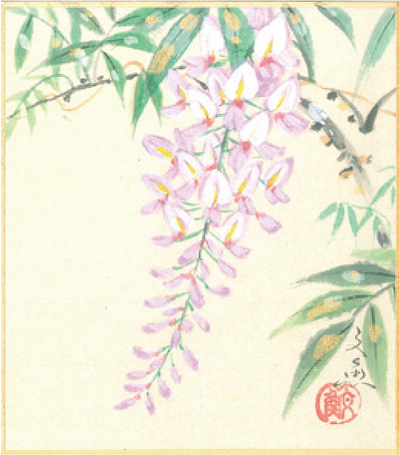 寸松庵色紙(春)中谷 文魚作画「藤」 寸松庵寸法13.6X12.1cm