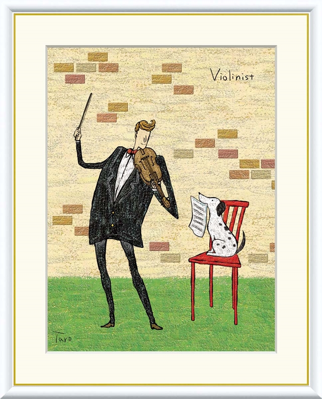 高精細デジタル額装版画 現代アート Taro ゆかいな音楽家 橋北 太郎 (はしきた たろう) 「 バイオリニスト 」 サイズ F8号