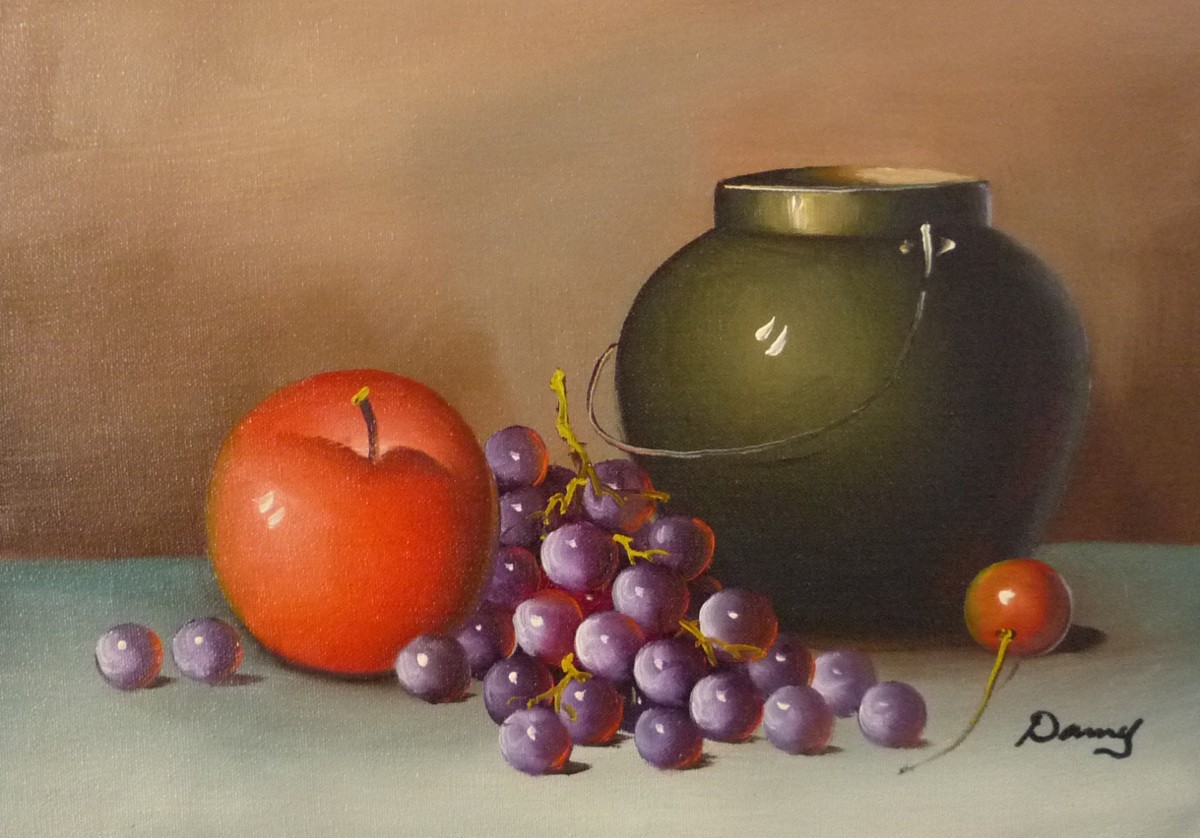 肉筆絵画 油絵 F4号 「果物静物」-16- 特価