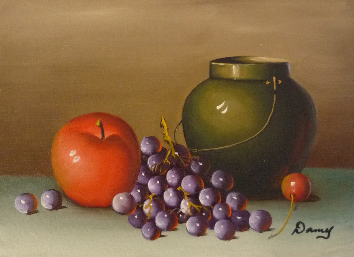 肉筆絵画 油絵 F4号 「果物静物」-23- 特価