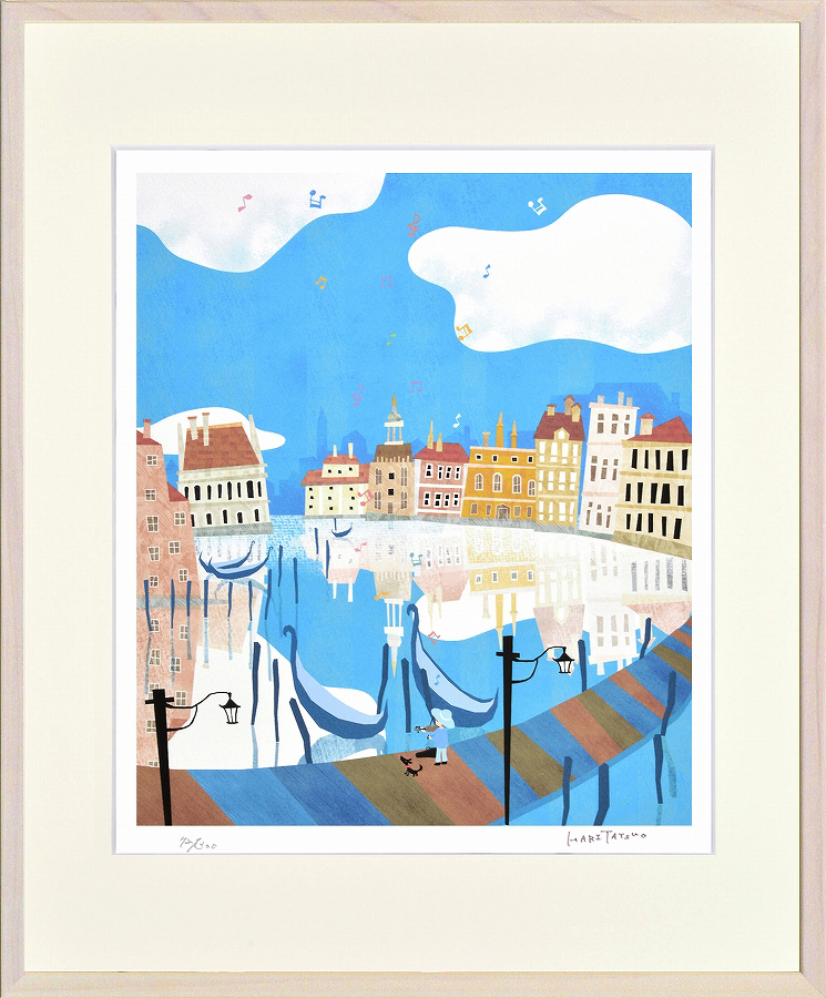 ジークレー版画 額装絵画 はりたつお作 「水の都」 四ッ切