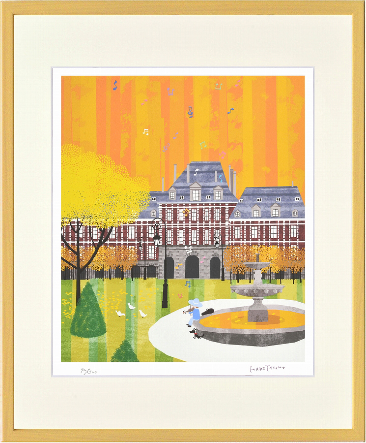 ジークレー版画 額装絵画 はりたつお作 「噴水広場」 四ッ切