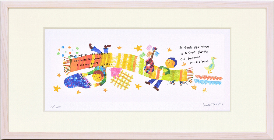 ジークレー版画 額装絵画 はりたつお作 「マフラー」 400X200mm