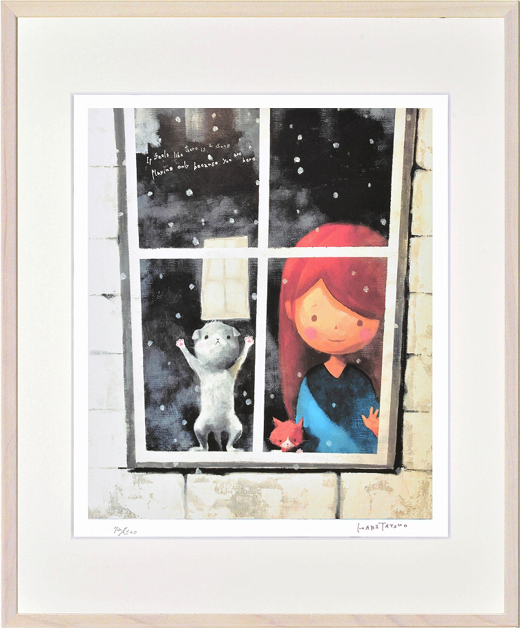 商品名 ジークレー版画 額付き絵画 はりたつお作 「雪ふる日いっしょだね」