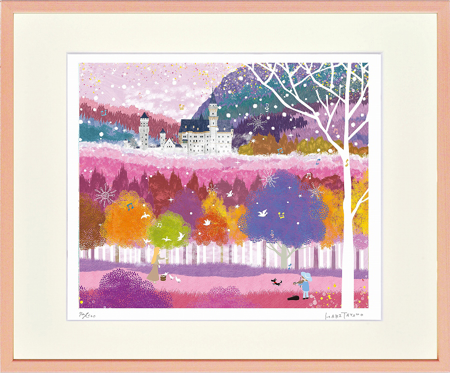 商品名 ジークレー版画 額付き絵画 はりたつお作 「ノイシュバンシュタイン城とシンデレラ」