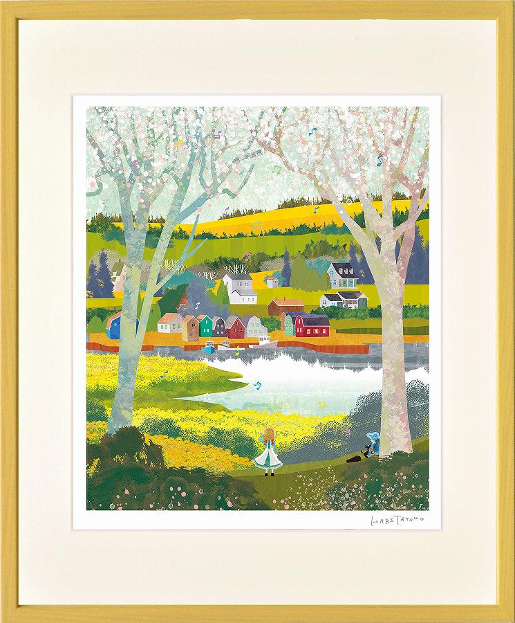 ジークレー版画 額装絵画 はりたつお作 「アンとプリンスエドワード島の菜の花(赤毛のアン)」 四ッ切