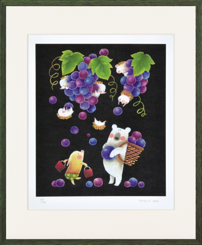 商品名 ジークレー版画 額付き絵画 藪上 陽子 「ブドウ狩り」