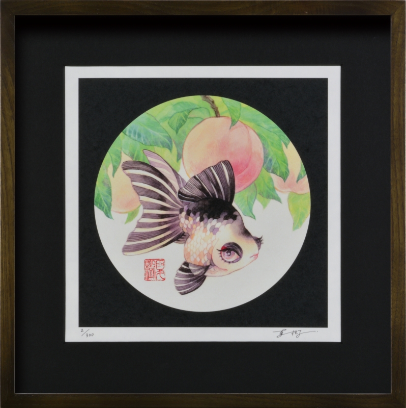 ジークレー版画 額装絵画 岩本夏樹 「桃にパンダ蝶尾」 300角